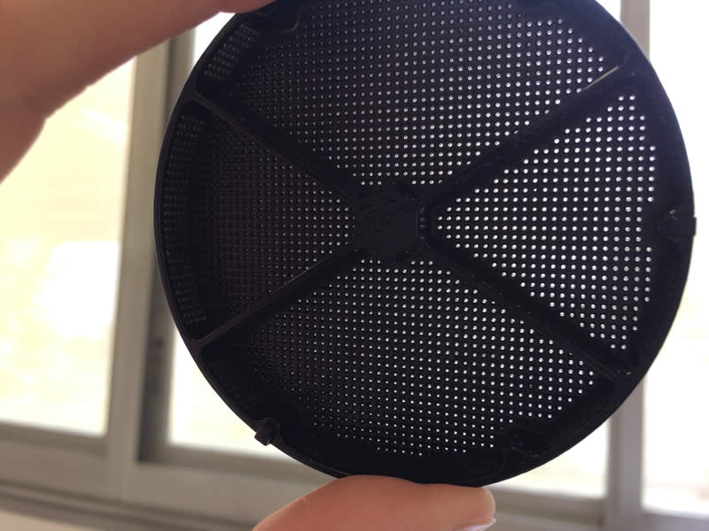 Successivement et couches après couches, la résine est polymérisée par une lampe à ultra violets. L’épaisseur des couches est très fine : 16 microns, soit 0,016 mm. Soit 62 couches de matière dans une épaisseur de 1 mm !